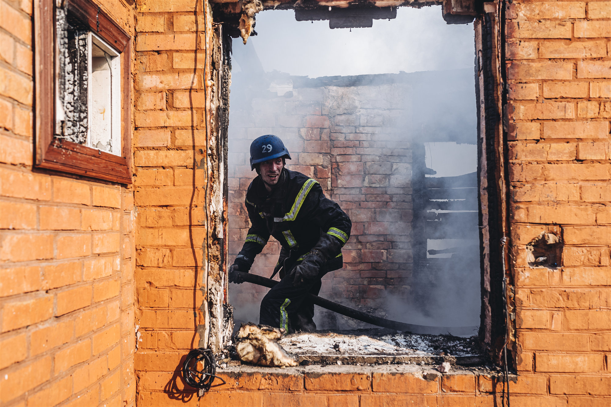 2022年3月23日,消防员在乌克兰基辅市一处受损的房屋内使命。 新华社发
