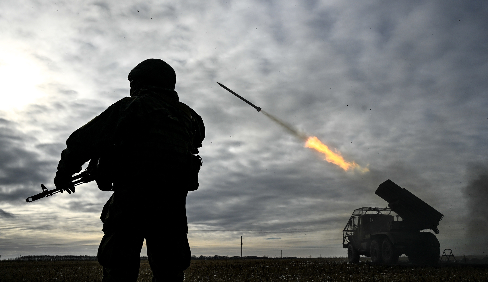 2024年11月16日,俄罗斯士兵放射BM-21格拉德多管火箭放射器。图片来源:视觉中国