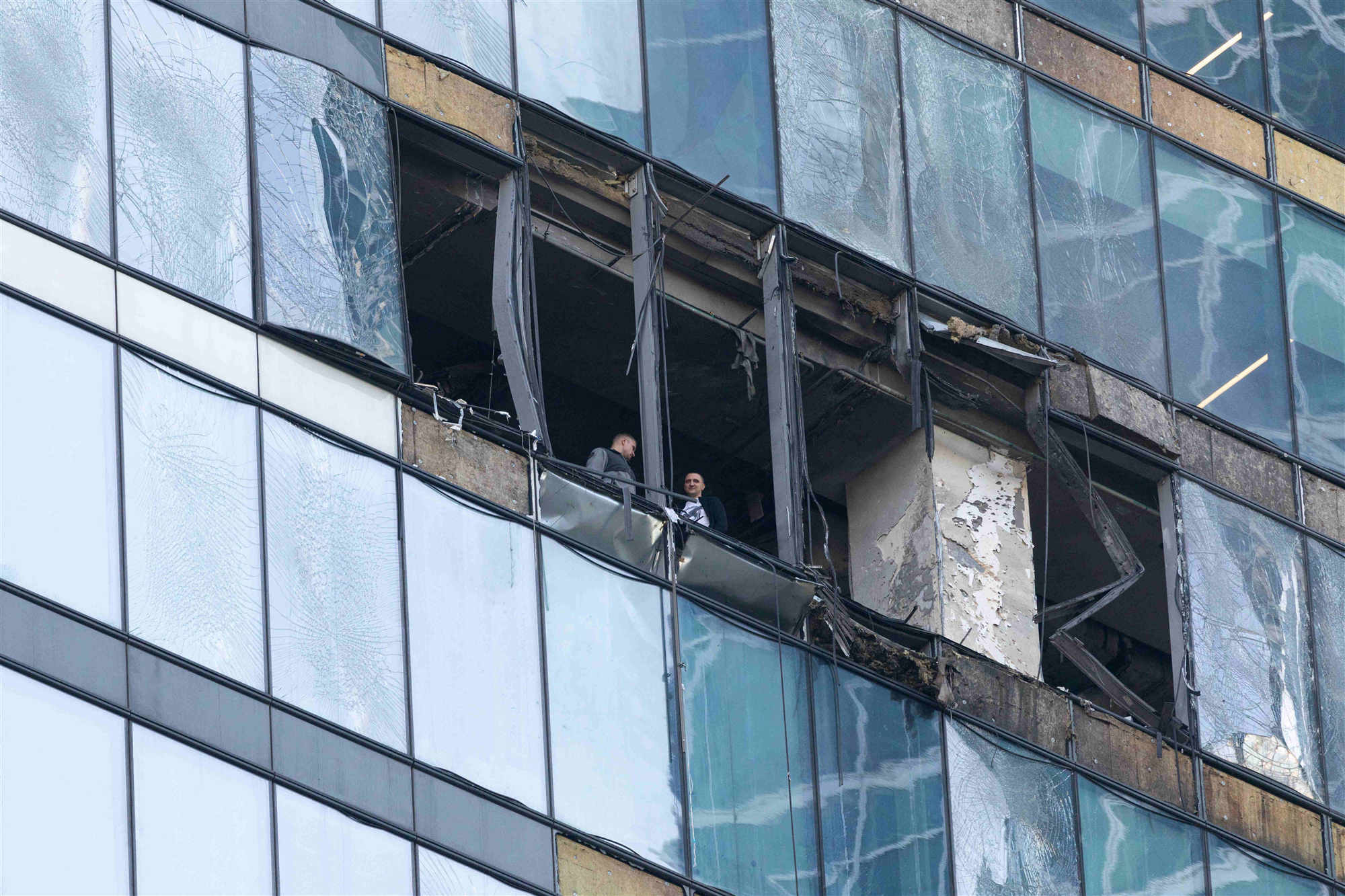 2023年8月1日,莫斯科再遭无东说念主机弥留,图为在受损修复。新华社发